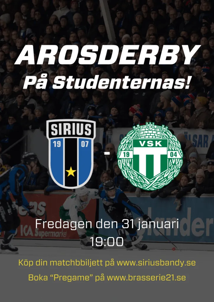 AROSDERBY!januari 17, 2025 Aktuellt, Klubbnyheter, Nyheter Boka in fredagen den 31 januari redan nu i almanackan! AROSDERBY! Senast VSK var på besök var det 2 500 personer på Studan… Slår vi det iår?? Köp din biljett ——–> Här! Boka ”Pregame” —–> Här 50/50-lott ———–> Här
