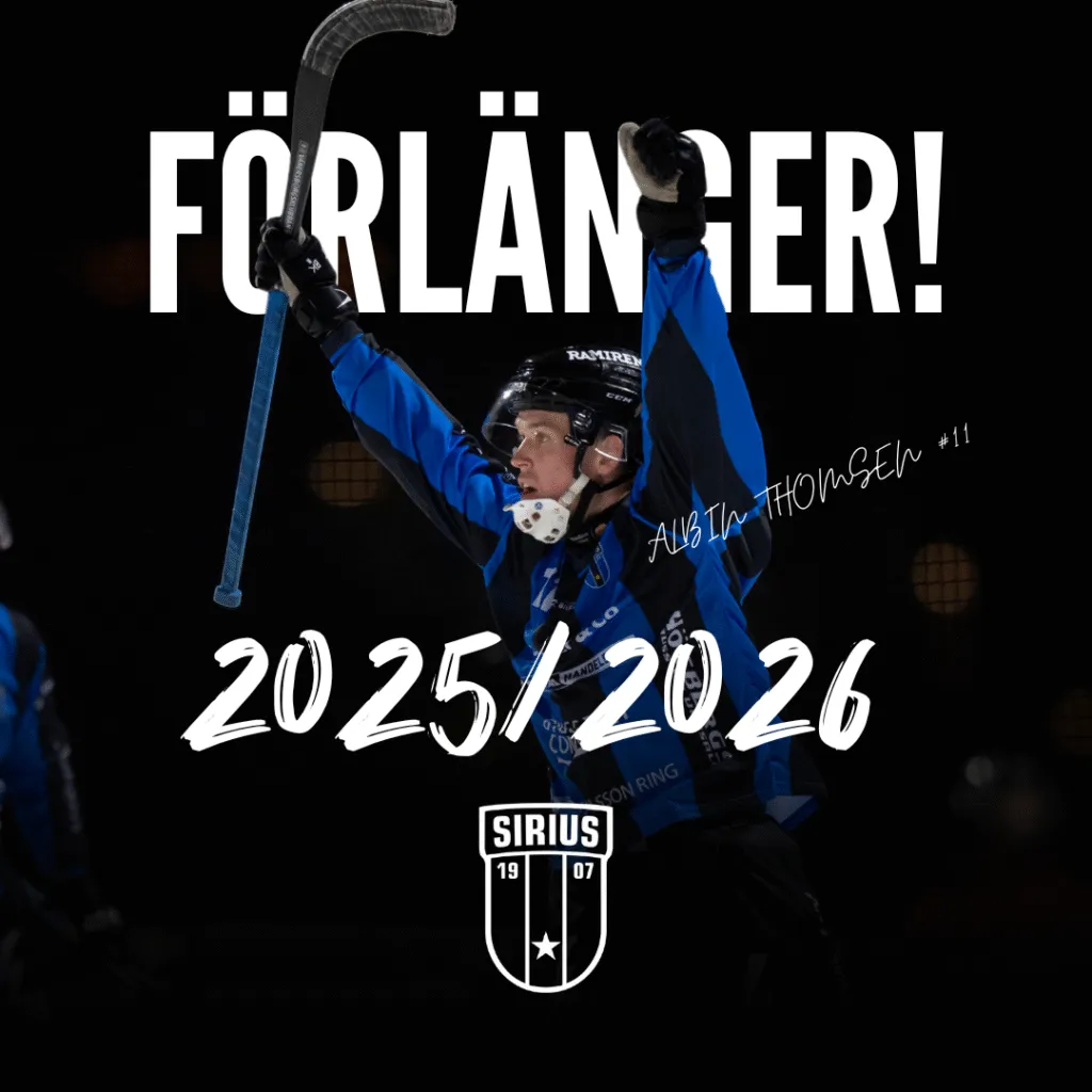 Ytterligare en av Sirius Bandys viktiga spelare har skrivit på nytt kontrakt för fortsatt spel under ett år: anfallaren Albin Thomsen som trivs i såväl laget som i staden.